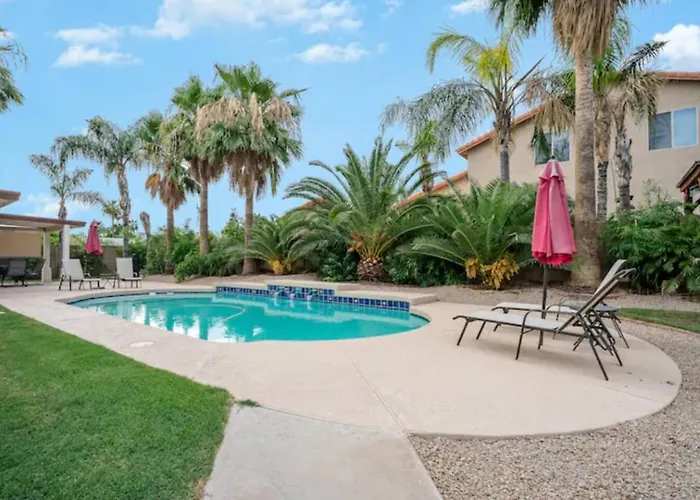5Br Retreat W Pool Misting Patio & Prime Location Vila Phoenix está localizada a 4.5 km de Orange Tree Golf Course, dando acesso a vários pontos turísticos próximos. Oferecendo o parque de estacionamento, bem como Wi-Fi, esta casa de férias está situada no bairro Paradise Valley de Phoenix.